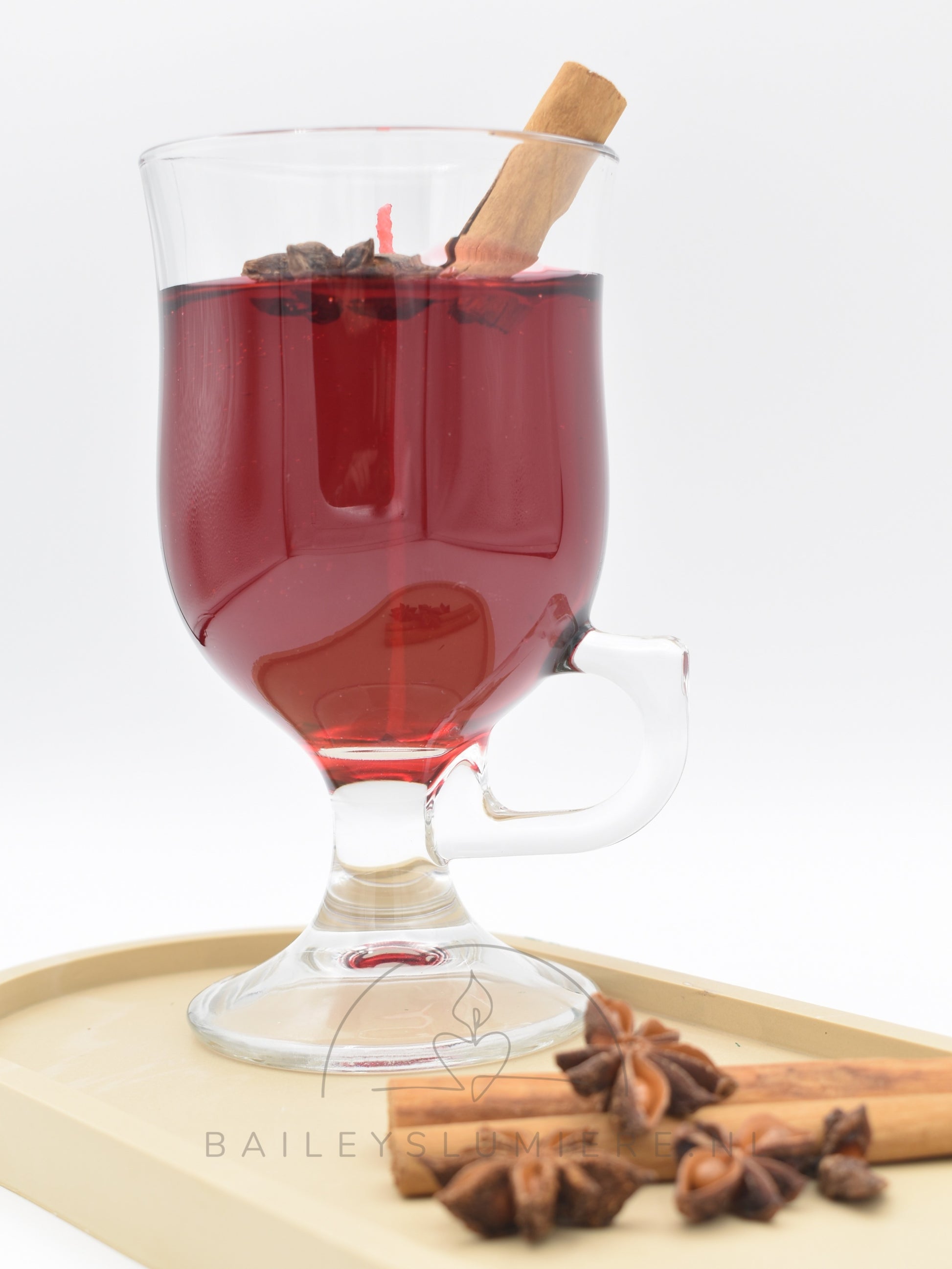 Handgemaakte Glühwein kaars, winterse warmte en gezelligheid