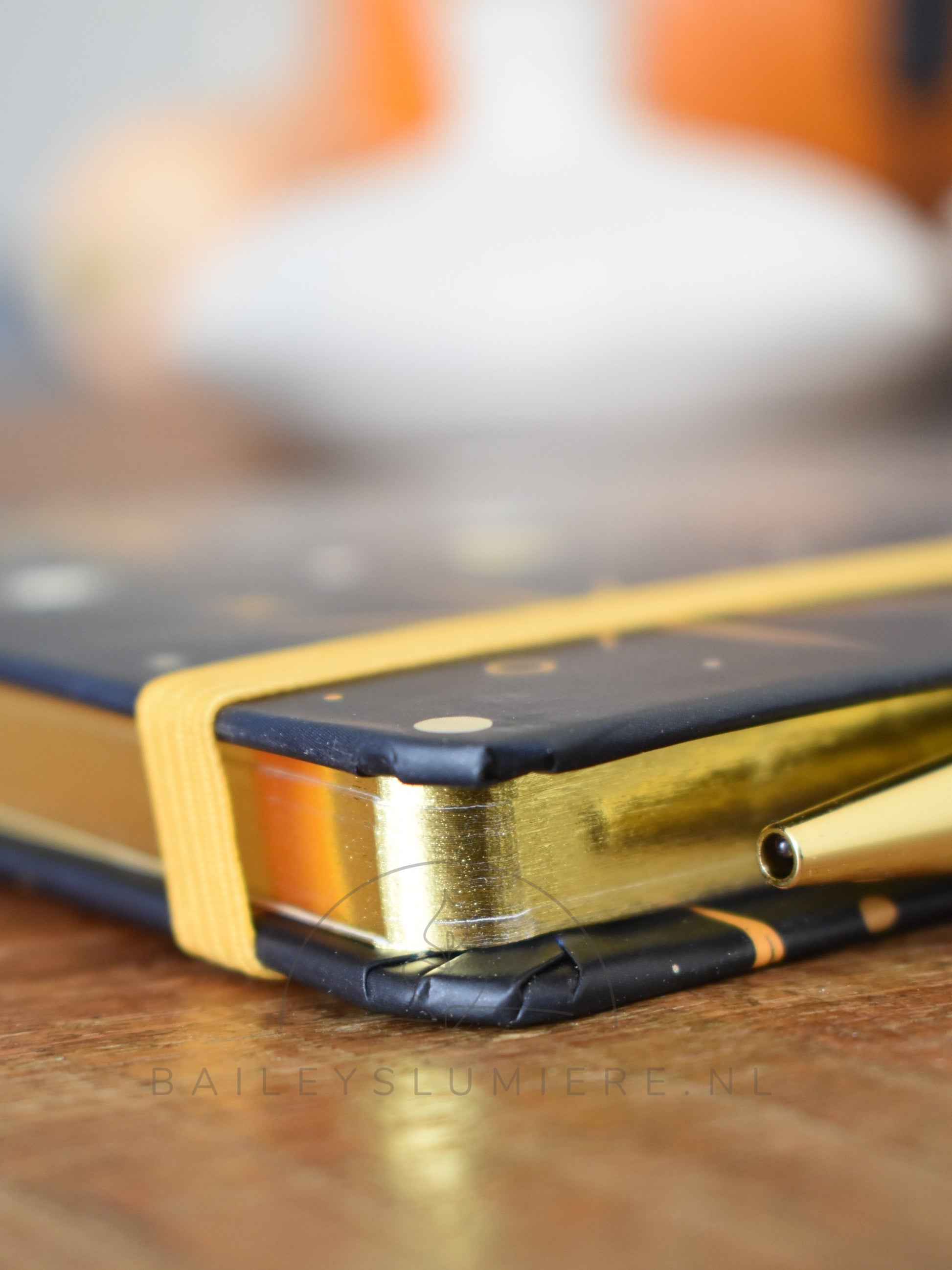 De stijlvolle hardcover heeft een donkerblauwe sterrenhemel met gouden sterren en een inspirerende quote op de voorkant. Dankzij het elastiek blijft het notitieboek netjes gesloten en met het bijpassende goudkleurige penlusje heb je altijd je pen bij de hand.
